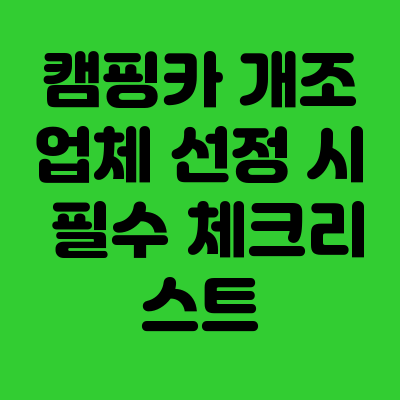 업체 선정 전에는 사업자 등록증, 튜닝 승인 이력, A/S 확약서를 포함한 5가지 핵심 항목을 반드시 체크해야 안전한 캠핑 환경을 보장받을 수 있습니다.