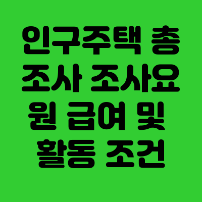 인구주택 총조사 조사요원은 통계청이 5년 주기로 실시하는 전국 단위 인구주택총조사에서 직접 가구를 방문해 조사하는 단기 공공 일자리로, 만 18세 이상 대한민국 국민이라면 누구나 census.go.kr을 통해 지원할 수 있다.