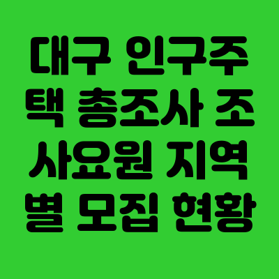 대구 인구주택 총조사 조사요원 모집은 대구광역시 동·서·남·북·중·수성·달서구 및 달성군 단위로 구분 모집하며, 대구통계사무소(경북지방통계청 대구사무소)를 통해 접수 및 관리된다.