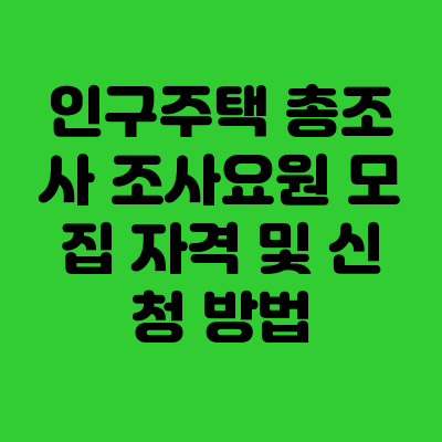 인구주택 총조사 조사요원 모집 자격 및 신청 방법