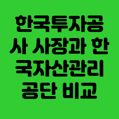 | 비교 항목 | 한국자산관리공사(캠코) | 한국투자공사(KIC) |