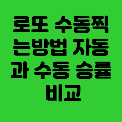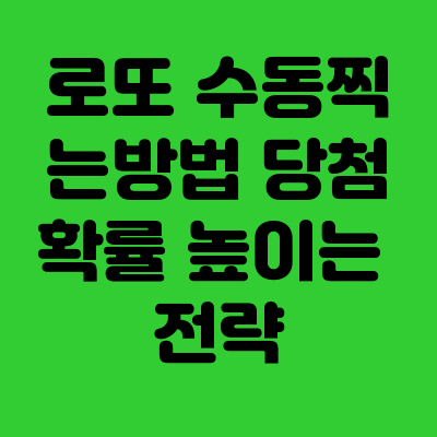 - 로또 수동찍는방법은 자동과 1등 당첨 확률은 동일하지만, 상금 분할 위험을 줄여 실수령액을 높일 수 있는 전략적 선택입니다.